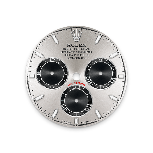 Die Ausführung des Cosmograph Daytona in 18 Karat Gold mit Cerachrom-Lünette verfügt über ein Oysterflex-Band. Dieses von Rolex entwickelte, patentierte Armband verbindet auf einzigartige Weise die Robustheit eines Metallarmbandes mit dem Tragekomfort eines Elastomerbandes. Es umschließt zwei flexible gebogene Metallfederblätter – je eines pro Bandhälfte –, die mit hochwertigem schwarzen Elastomer überzogen sind. Zur Erhöhung des Tragekomforts verfügt das Oysterflex-Band über „Polster“ an den Innenseiten sowie eine Oysterlock-Sicherheitsfaltschließe, die versehentliches Öffnen verhindert. Seine Länge kann mit dem raffinierten Rolex Glidelock-Verlängerungssystem angepasst werden.