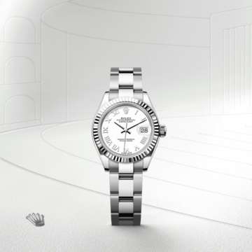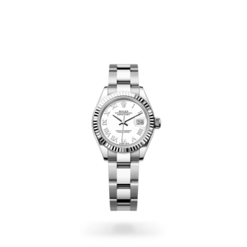 Die geriffelte Lünette von Rolex ist ein Markenzeichen. Ursprünglich hatte die Riffelung der Oyster Lünette einen praktischen Zweck: Sie diente zum Verschrauben mit dem Gehäuse, um die Wasserdichtheit der Armbanduhr zu gewährleisten. Die Riffelung entsprach deshalb der des Gehäusebodens, der ebenfalls mithilfe von Rolex Spezialwerkzeugen mit dem Gehäuse verschraubt wurde, um die Uhr wasserdicht zu machen. Mit der Zeit erhielt die Riffelung eine rein ästhetische Funktion und wurde zu einem prägenden Element des stilistischen Markenerbes von Rolex. Heute ist die geriffelte Lünette ein Distinktionsmerkmal, das bei dieser Lady-Datejust in Gold gefertigt wird.