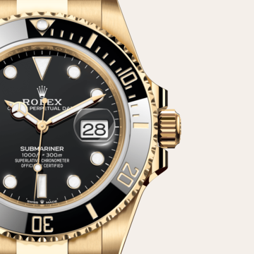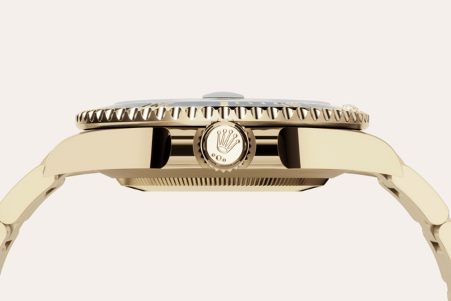 Eines der wesentlichen Merkmale der Submariner ist ihre drehbare Lünette. Auf der 60-Minuten-Graduierung kann der Taucher die genaue Tauchzeit ablesen und die Dekompressionszeit kontrollieren. Die von Rolex aus harter, korrosionsbeständiger Keramik hergestellte Cerachrom-Zahlenscheibe der Lünette ist äußerst kratzfest. Eine mit Leuchtmasse gefüllte Kapsel auf dem Dreieck der Nullmarkierung sorgt selbst in lichtarmen Umgebungen für eine gute Ablesbarkeit. Der gezackte Außenrand sorgt für hervorragende Griffigkeit unter Wasser, sogar mit Tauchhandschuhen.