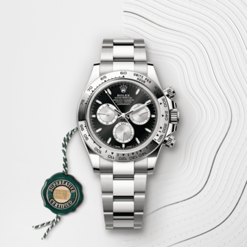With its tachymetric scale, its three counters and its pushers, the Cosmograph Daytona was designed to be the ultimate timing tool for endurance racing drivers. The bezel features a tachymetric scale to read average speed over a given distance based on elapsed time. This scale offers optimal legibility, making the Cosmograph Daytona the ideal instrument for measuring speeds up to 400 units per hour, expressed in kilometres or miles.