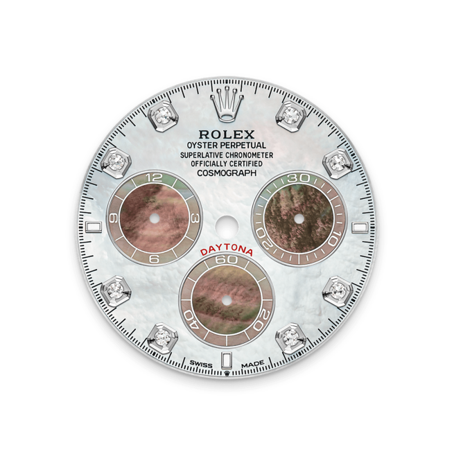 The 18 ct gold versions of the Cosmograph Daytona with a Cerachrom bezel are available with an Oysterflex bracelet. Developed by Rolex and patented, it singularly combines the robustness of a metal bracelet with the comfort of an elastomer bracelet. It is made up of two flexible curved metal blades – one in each bracelet section – overmoulded with high-performance black elastomer. For optimum comfort, the Oysterflex bracelet is equipped with cushions on its inner sides and an Oysterlock safety clasp to prevent accidental opening. Its length may be adjusted via the ingenious Rolex Glidelock extension system.