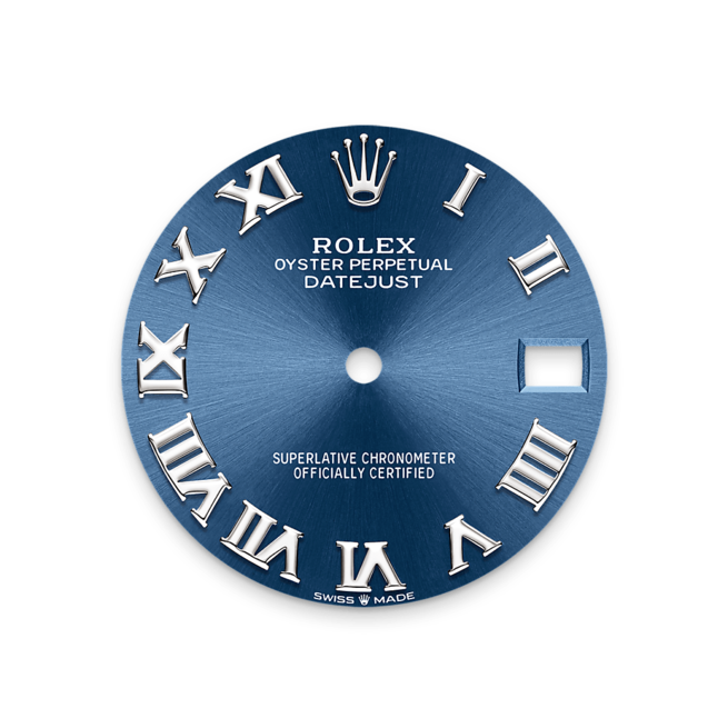 The sunray finish creates delicate light reflections on many dials in the Oyster Perpetual collection. It is obtained using masterful brushing techniques that create grooves running outwards from the centre of the dial. Light is diffused consistently along each engraving, creating a characteristic subtle glow that moves depending on the position of the wrist. Once the sunray finish has been completed, the dial colour is applied using Physical Vapour Deposition or electroplating. A light coat of varnish gives the dial its final look.