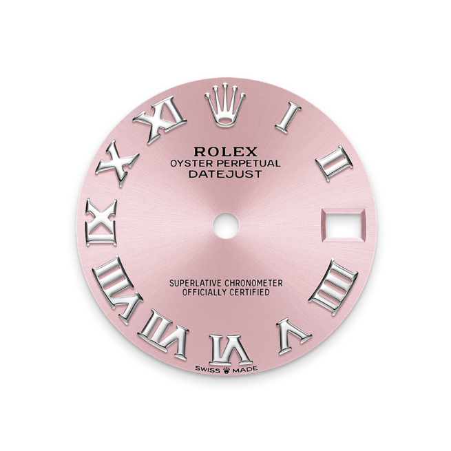 The sunray finish creates delicate light reflections on many dials in the Oyster Perpetual collection. It is obtained using masterful brushing techniques that create grooves running outwards from the centre of the dial. Light is diffused consistently along each engraving, creating a characteristic subtle glow that moves depending on the position of the wrist. Once the sunray finish has been completed, the dial colour is applied using Physical Vapour Deposition or electroplating. A light coat of varnish gives the dial its final look.