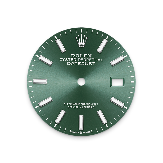 The sunray finish creates delicate light reflections on many dials in the Oyster Perpetual collection. It is obtained using masterful brushing techniques that create grooves running outwards from the centre of the dial. Light is diffused consistently along each engraving, creating a characteristic subtle glow that moves depending on the position of the wrist. Once the sunray finish has been completed, the dial colour is applied using Physical Vapour Deposition or electroplating. A light coat of varnish gives the dial its final look.