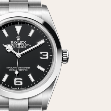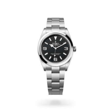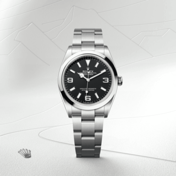 The Oyster Perpetual Explorer 36 imparts a fresh elan to the sober, clean lines that have long established it as an icon. The smooth bezel in Oystersteel is robust yet elegant, and in perfect harmony with the Explorer’s iconic heritage.