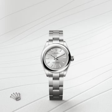 The Oyster bracelet is a perfect alchemy of form and function, aesthetics and technology. First introduced in the late 1930s, this particularly robust and comfortable metal bracelet with its broad, flat three-piece links remains the most universal bracelet in the Oyster collection. For the Oyster Perpetual models the Oyster bracelet is fitted with an Oysterclasp.