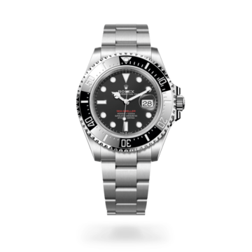 The black dial of the Sea-Dweller has the large hands and indices reserved for Rolex professional models. The dial bears the name Sea-Dweller in red, a reference to the first model. The innovative Chromalight display on the dial pushes back the boundaries of visibility in dark environments. Its distinctive blue glow lasts up to eight hours with a uniform luminosity, practically twice as long as that of standard luminescent materials.
