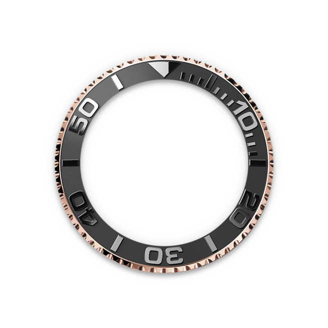 The Yacht-Master’s bidirectional rotatable 60-minute graduated bezel is made entirely from precious metals or fitted with a Cerachrom insert in high-tech ceramic. The raised polished numerals and graduations stand out clearly against a matt, sand-blasted background. This functional bezel – which allows the wearer to calculate, for example, the sailing time between two buoys – is also a key component in the model’s distinctive visual identity.